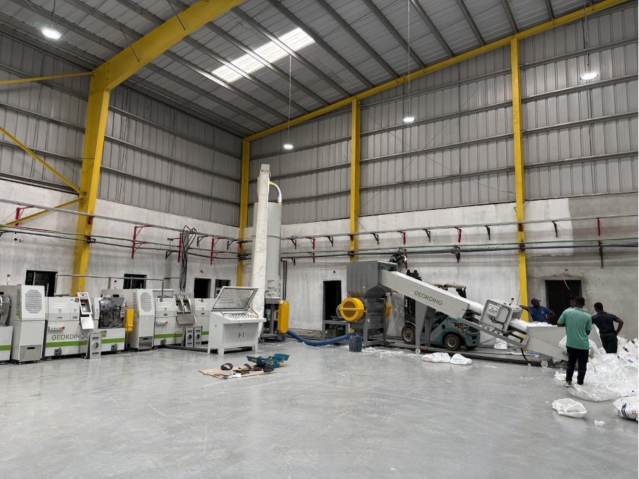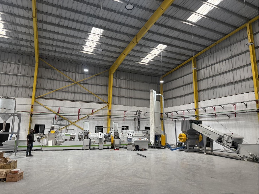 經過深入討論後,客戶明確提出希望將粉碎段與押出機段分開配置。此規劃不僅可降低粉碎段異常對押出製程的影響,也能在維修、清潔與操作管理上更加單純,提升整體產線的可靠度與使用壽命。